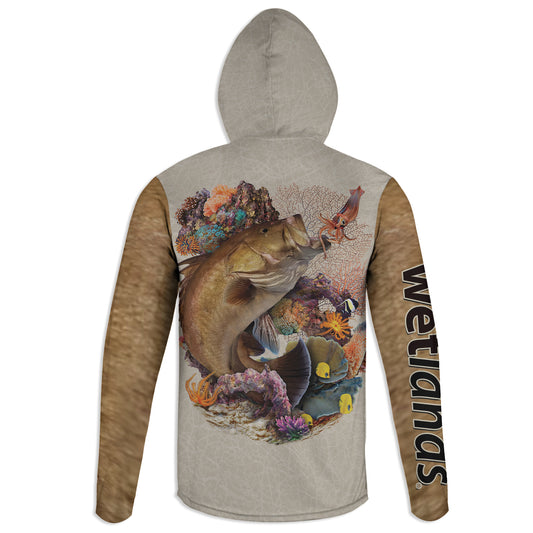 Warsaw Grouper - Unisex Long Sleeve Sun Proof Performance Fishing Top with built in Hoodie and Gaiter (short sleeve option also available)