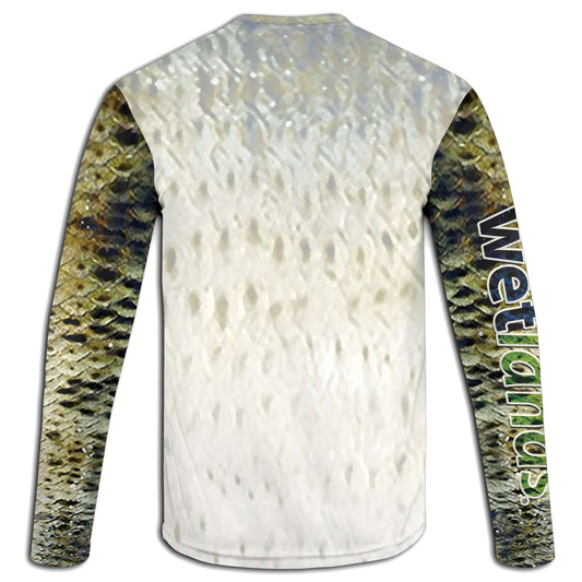 Crappie Shimmer - Unisex Sun Proof Long Sleeve or Short Sleeve Performance Fishing Top 100% AMERICAN MADE