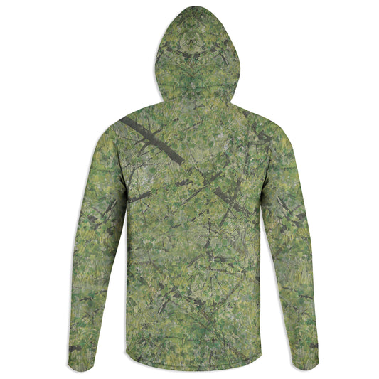 Pine Oak Camo - Unisex Long Sleeve Sun Proof Performance Fishing Top with built in Hoodie and Gaiter (short sleeve option also available)