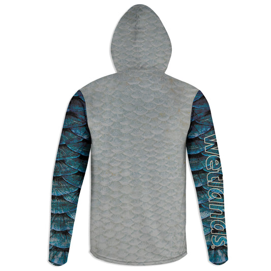 Blue Scale - Unisex Long Sleeve Sun Proof Performance Fishing Top with built in Hoodie and Gaiter (short sleeve option also available)