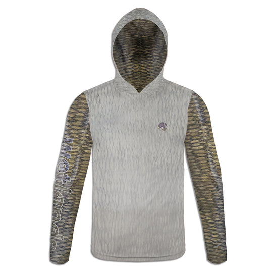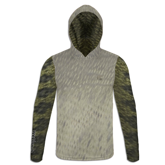Warmouth Bass - Unisex Long Sleeve Sun Proof Performance Fishing Top with built in Hoodie and Gaiter (short sleeve option also available)