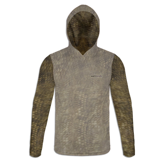 Bowfin and Crayfish - Unisex Long Sleeve Sun Proof Performance Fishing Top with built in Hoodie and Gaiter (short sleeve option also available)