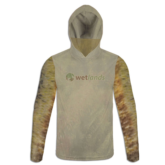 Brown Trout - Unisex Long Sleeve Sun Proof Performance Fishing Top with built in Hoodie and Gaiter (short sleeve option also available)