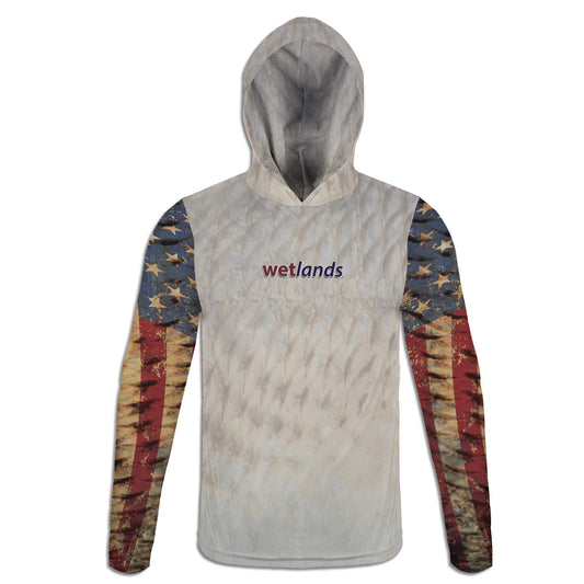 Flounder Flats - Unisex Long Sleeve Sun Proof Performance Fishing Top with built in Hoodie and Gaiter (short sleeve option also available)