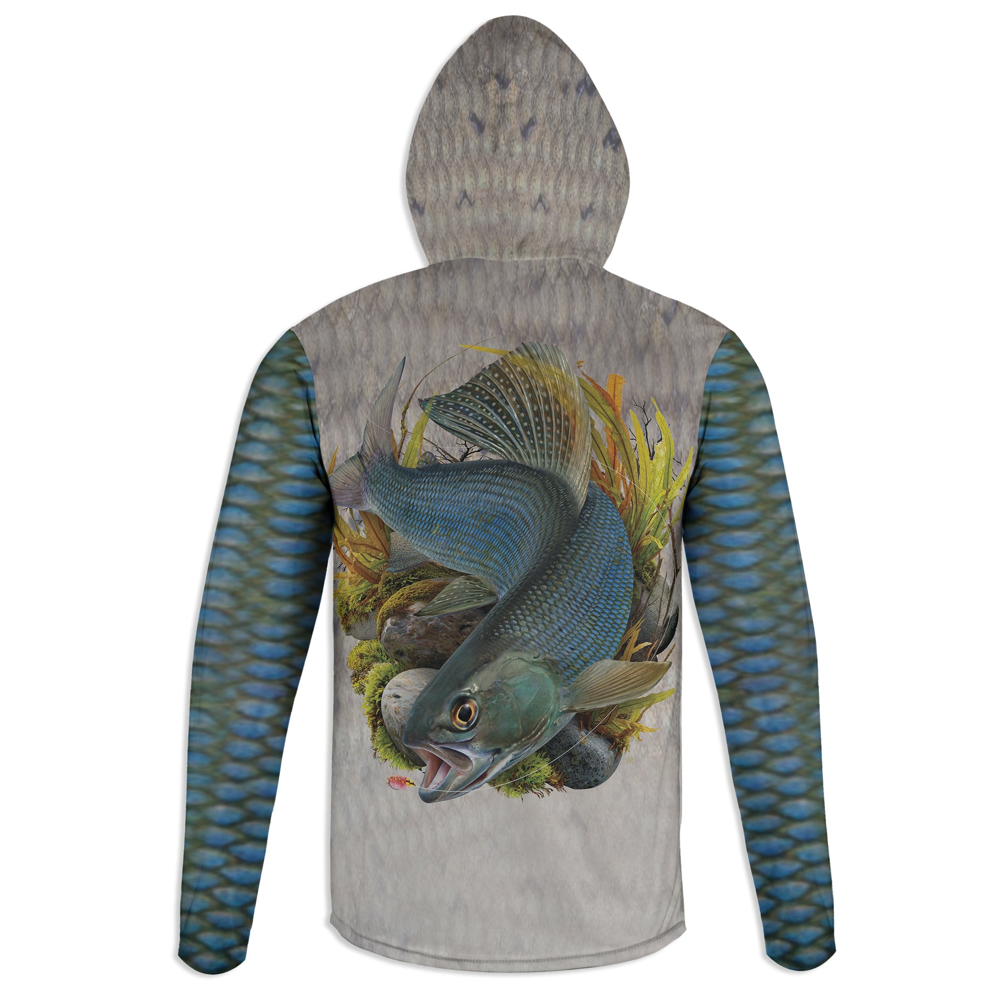 Arctic Grayling - Unisex Long Sleeve Sun Proof Performance Fishing Top with built in Hoodie and Gaiter (short sleeve option also available)