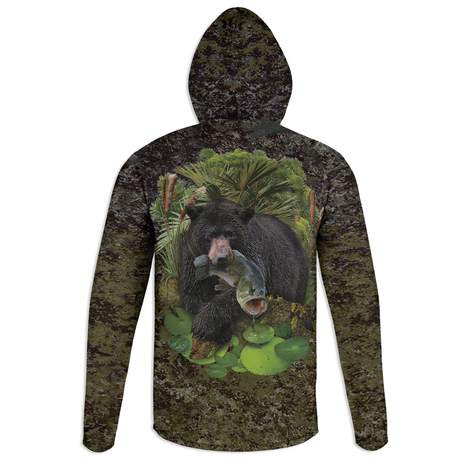 Black Bear and Bass - Unisex Long Sleeve Sun Proof Performance Fishing Top with built in Hoodie (short sleeve option also available)