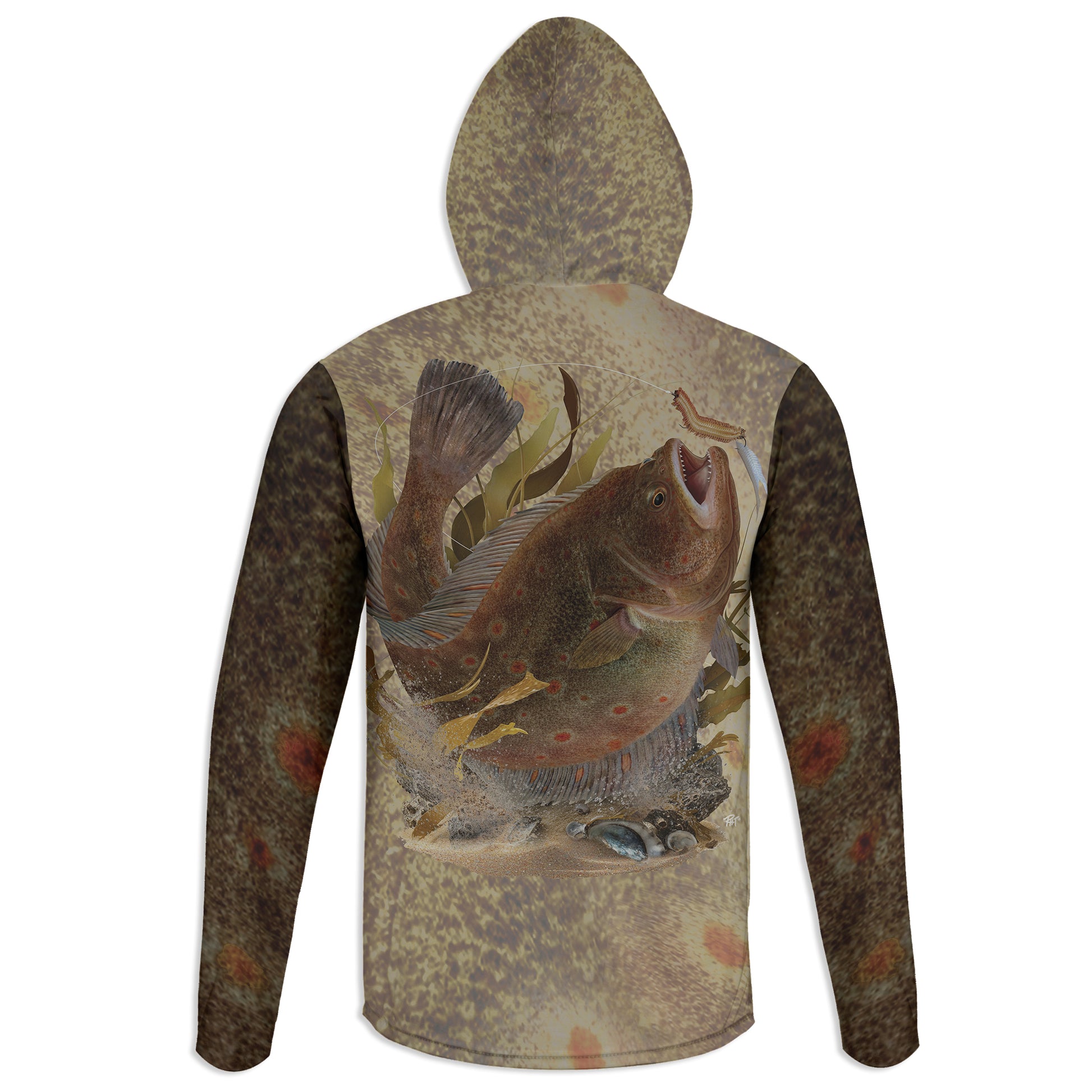 European Plaice - Unisex Long Sleeve Sun Proof Performance Fishing Top with built in Hoodie and Gaiter (short sleeve option also available)
